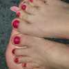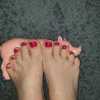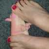 I have my toe nails painted (painted toes, red toe nails). I have sheer tan stockings on, I use a dildo to pretend it is your hard cock. I do footjob (feetjob), touch your cock with my nylon feet. Watch my sexy soles with wrinkles there (wrinkled soles), sexy toes, high arches, sexy heels. I rub your cock and the tip of your cock, I put my feet right on your cock. I show you my sexy feet so you can also worship them as they are so hot and sexy. Talking dirty and moaning.